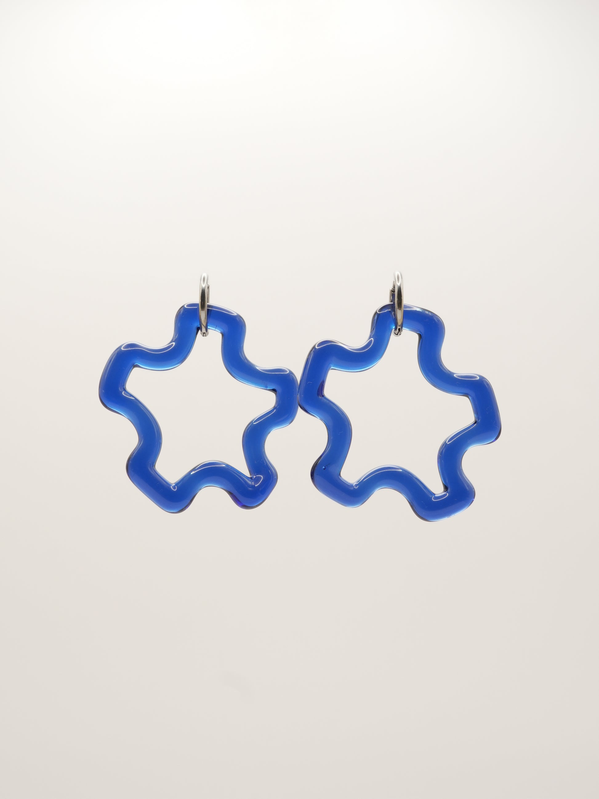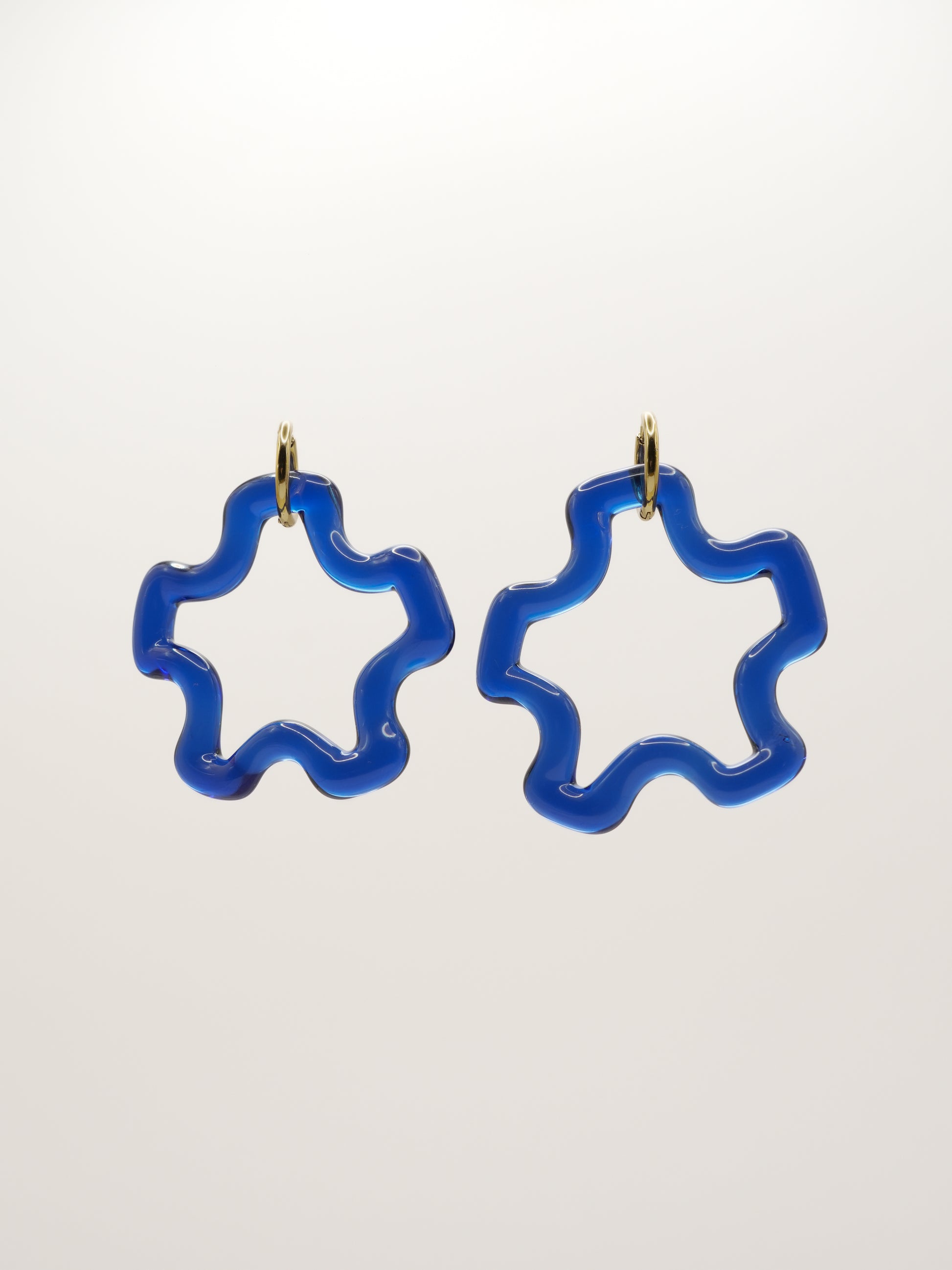 Los pendientes están meticulosamente creados a mano en forma de coral azul, utilizando vidrio borosilicato como material principal. Cada pendiente está equipado con unos cierres de acero inoxidable, los cuales han sido bañados en oro de 18k. Aura es una pieza diseñada para complementar tu look dándole un toque de sofisticación y distinción.