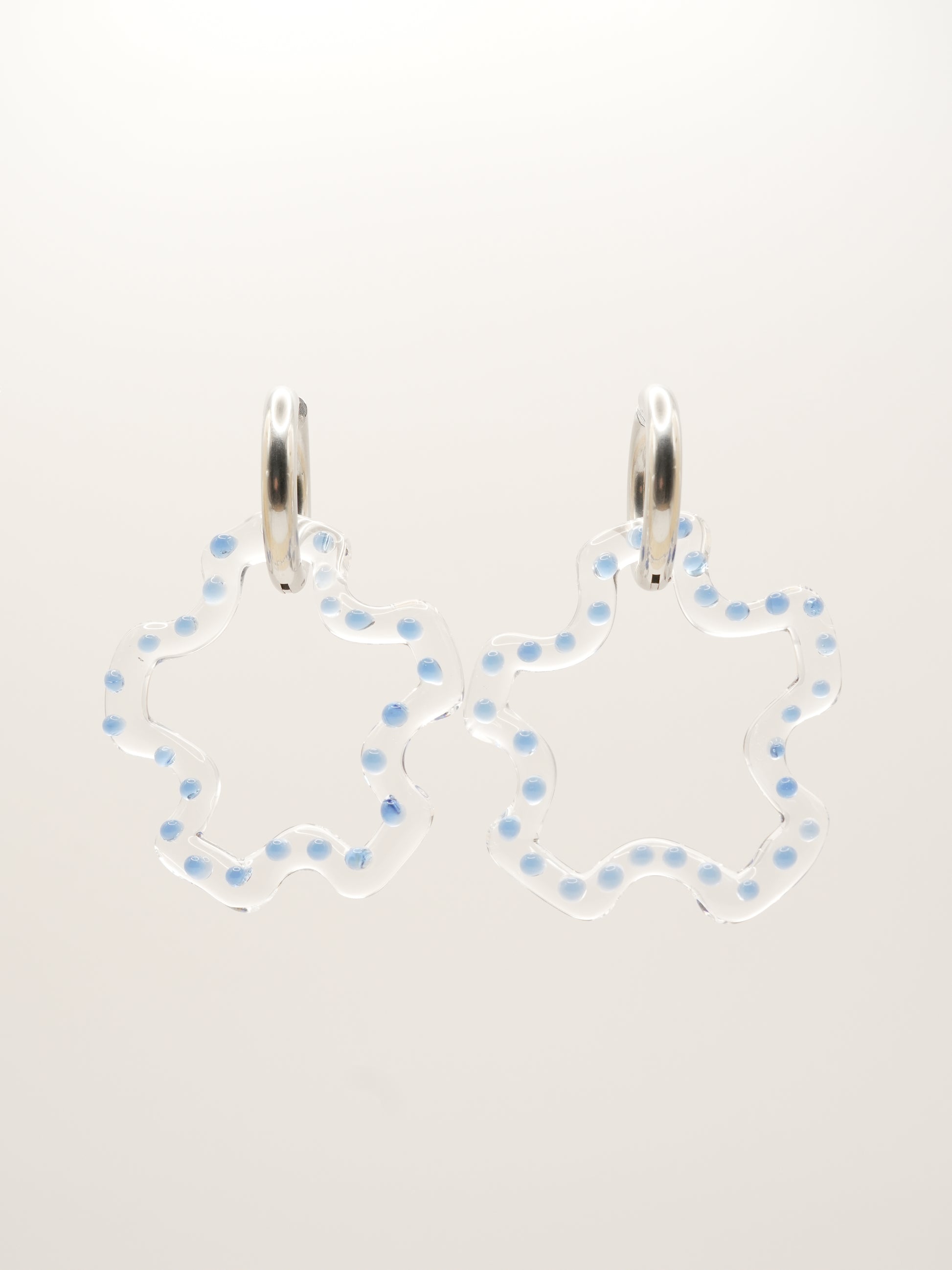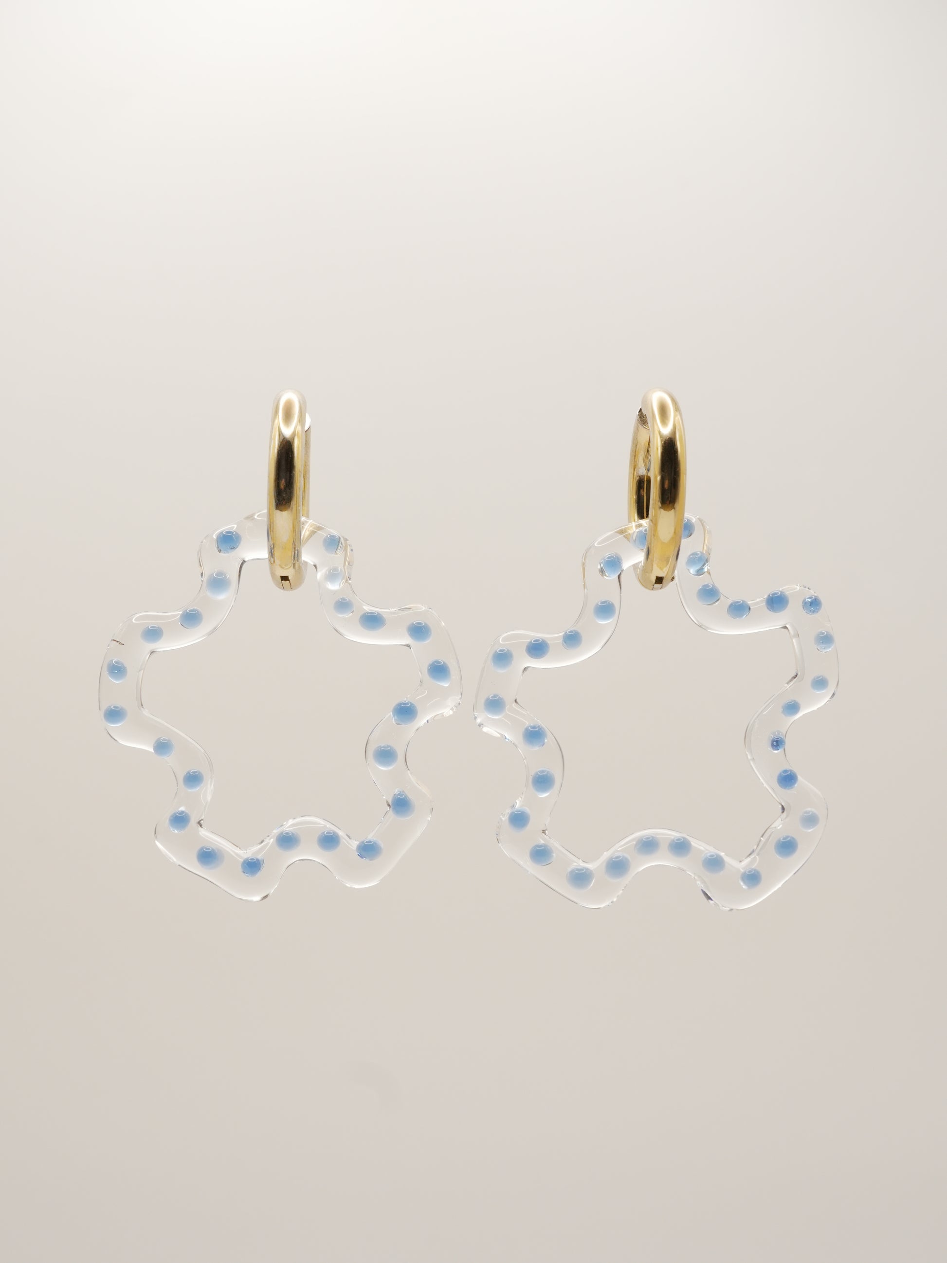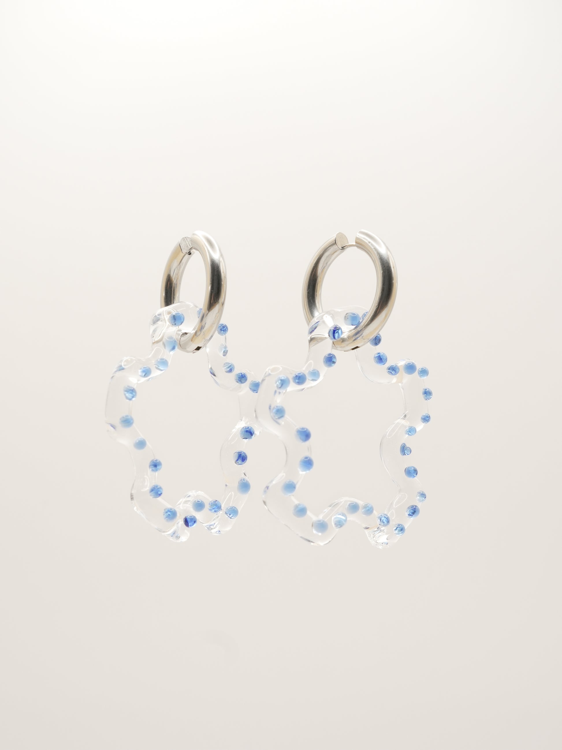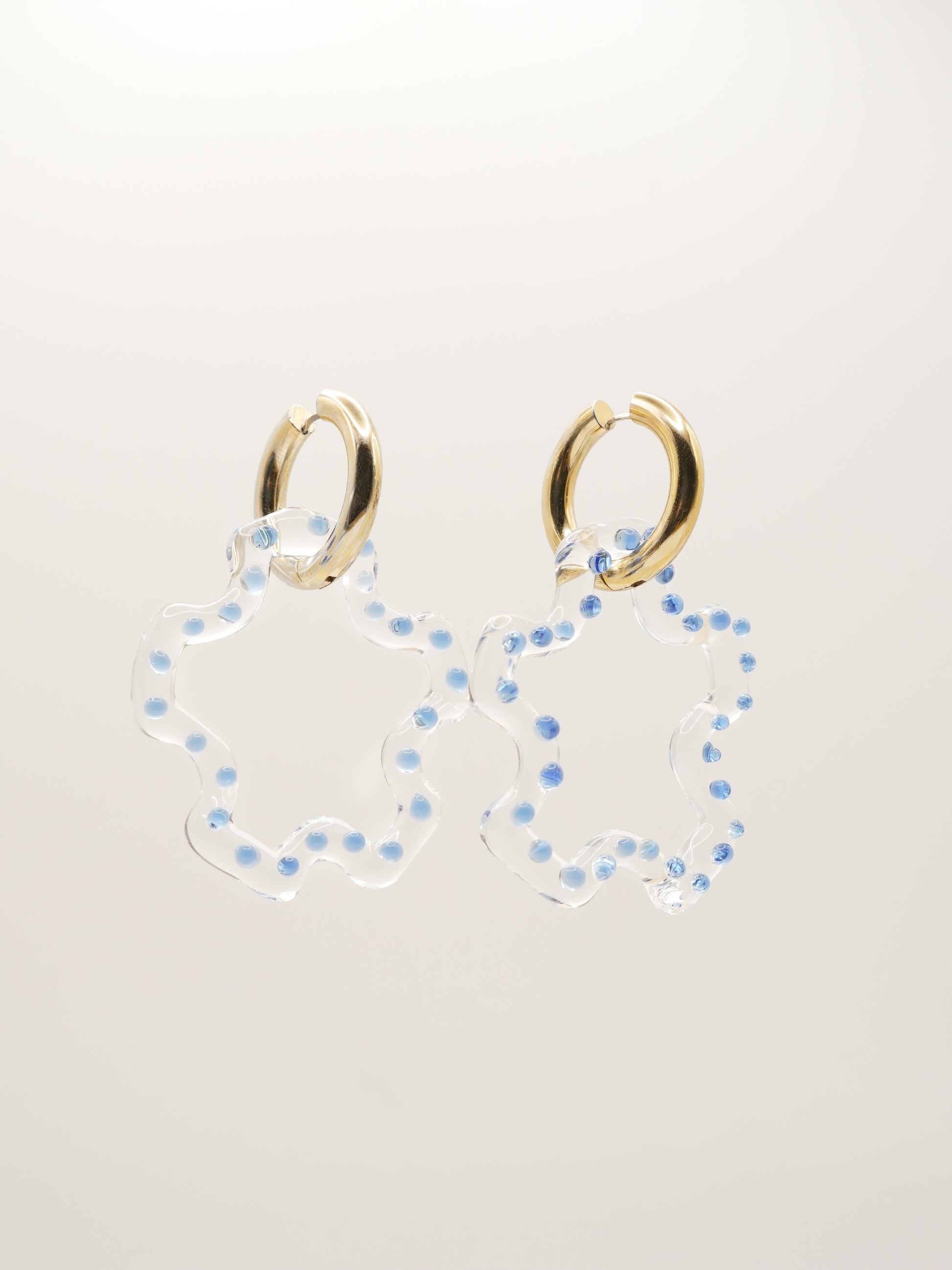 Los pendientes Altea son verdaderas obras de arte, hechas a mano en forma de coral con vidrio borosilicato transparente con puntos azules. Cada detalle del vidrio refleja la habilidad artesanal. El aro de acero inoxidable, añade un toque de lujo y durabilidad a estos pendientes, proporcionando un contraste sofisticado con el vidrio. Estos pendientes son una expresión de estilo y elegancia, perfectos para añadir un toque a cualquier atuendo.