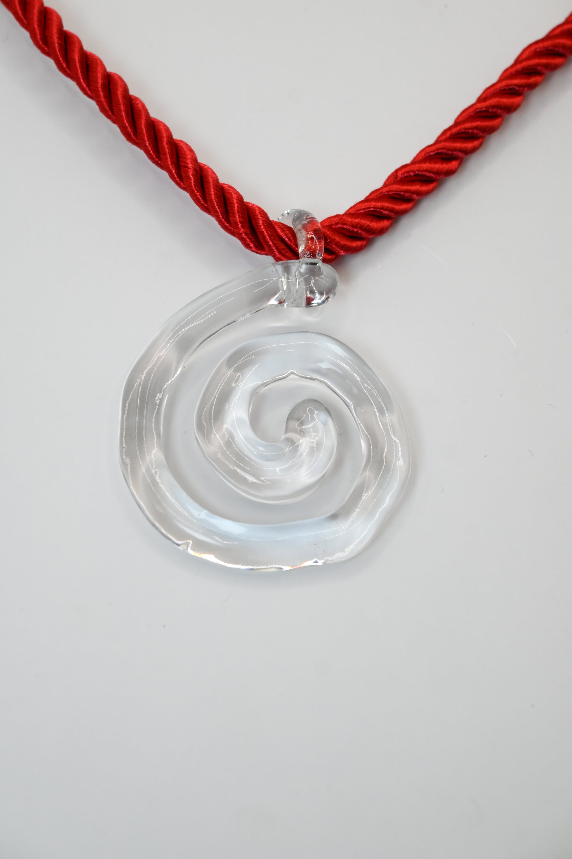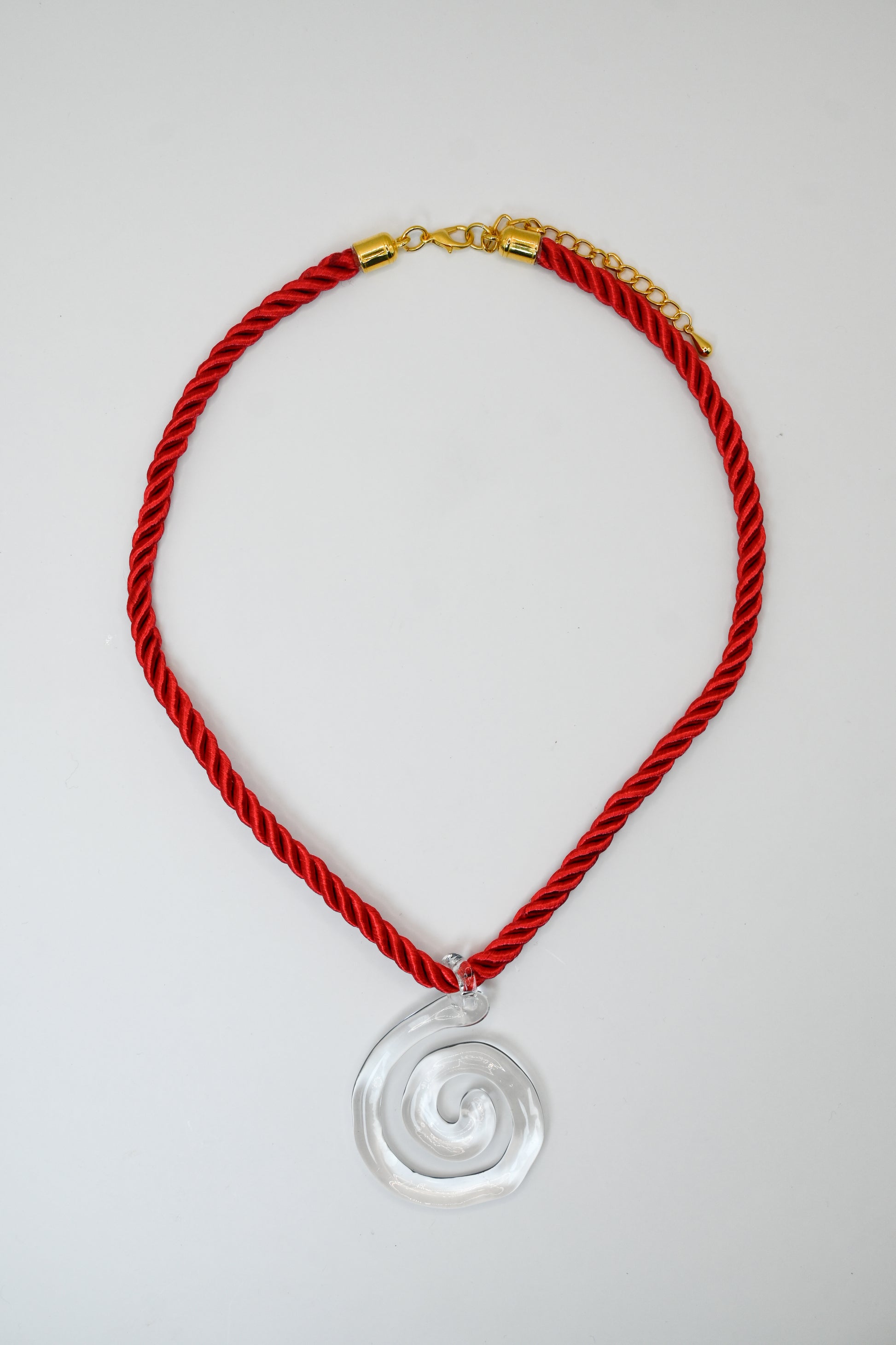 Vidrio borosilicato transparente junto con una cuerda roja marinera y un cierre graduable de metal zamak de 10x18mm bañado en oro de 24k.
