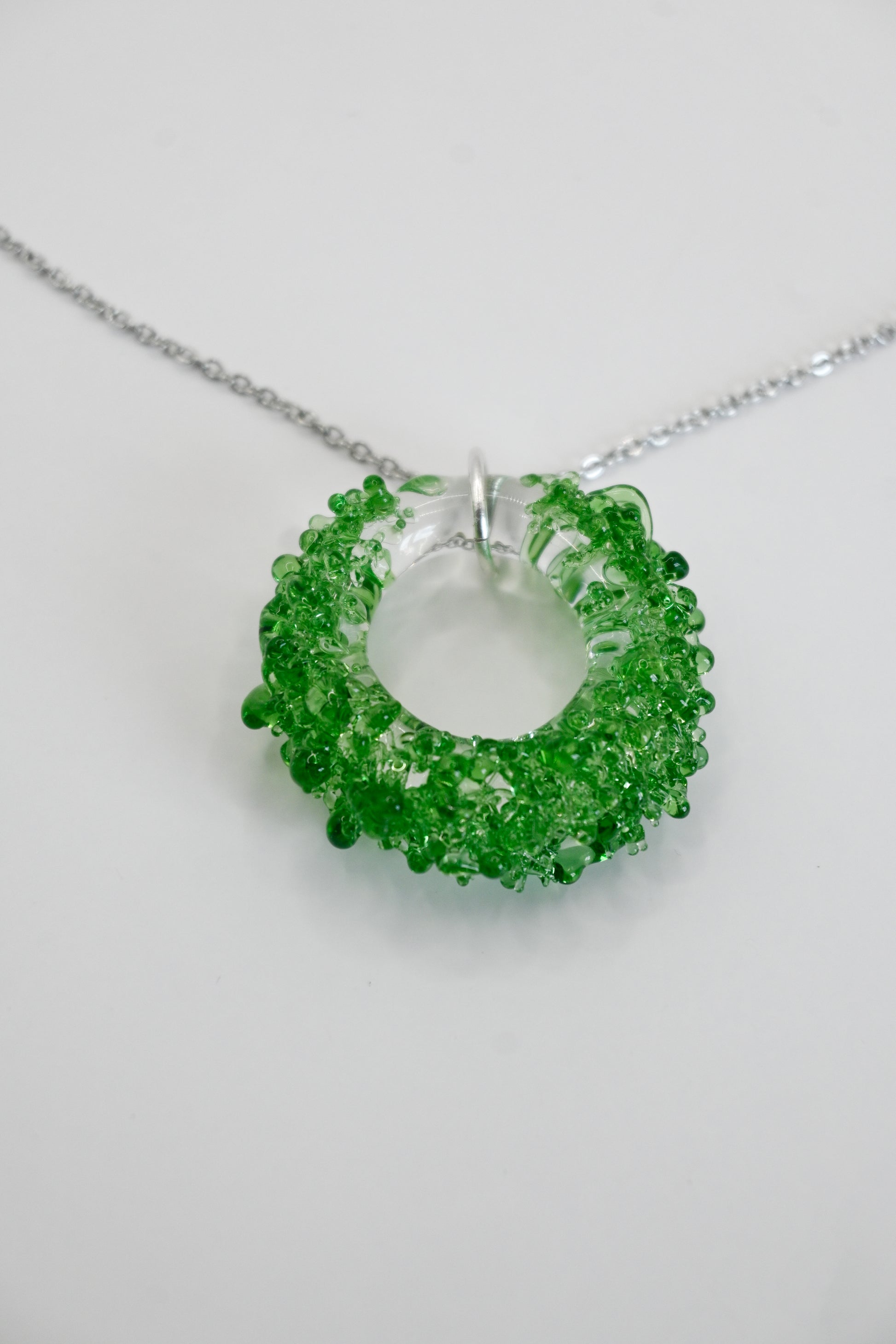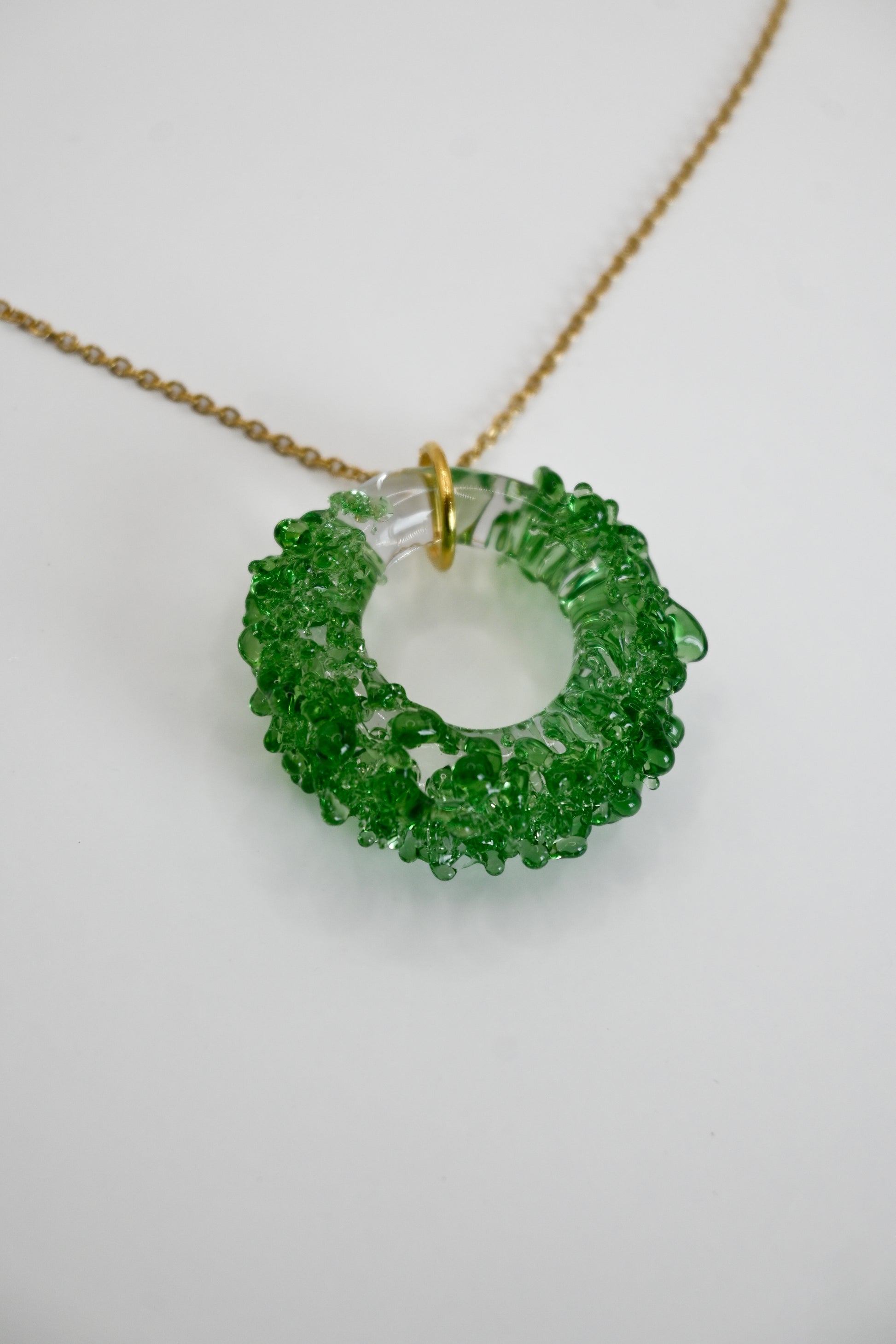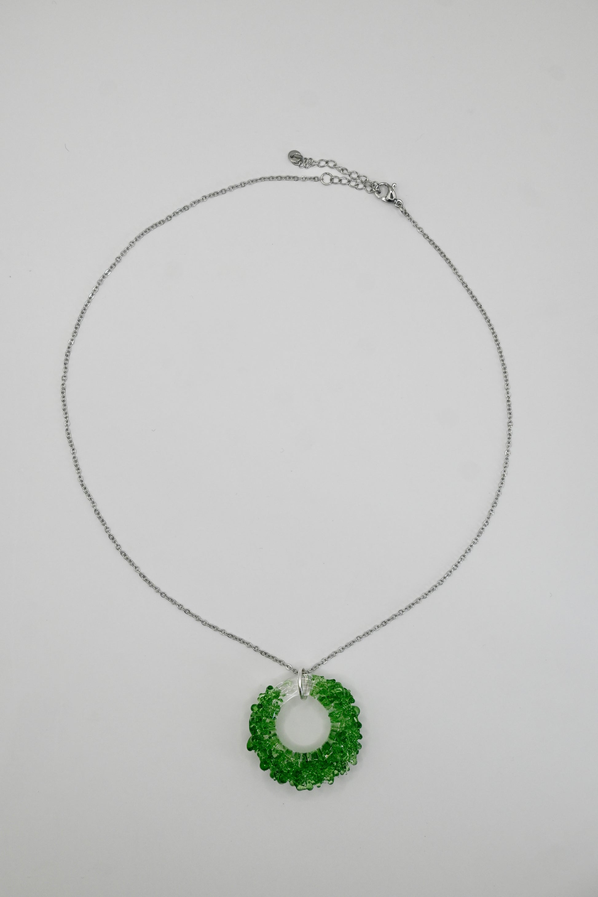 - Oro: Vidrio borosilicato transparente y verde y cadena de acero inoxidable bañado en oro de 18k de 45cm.