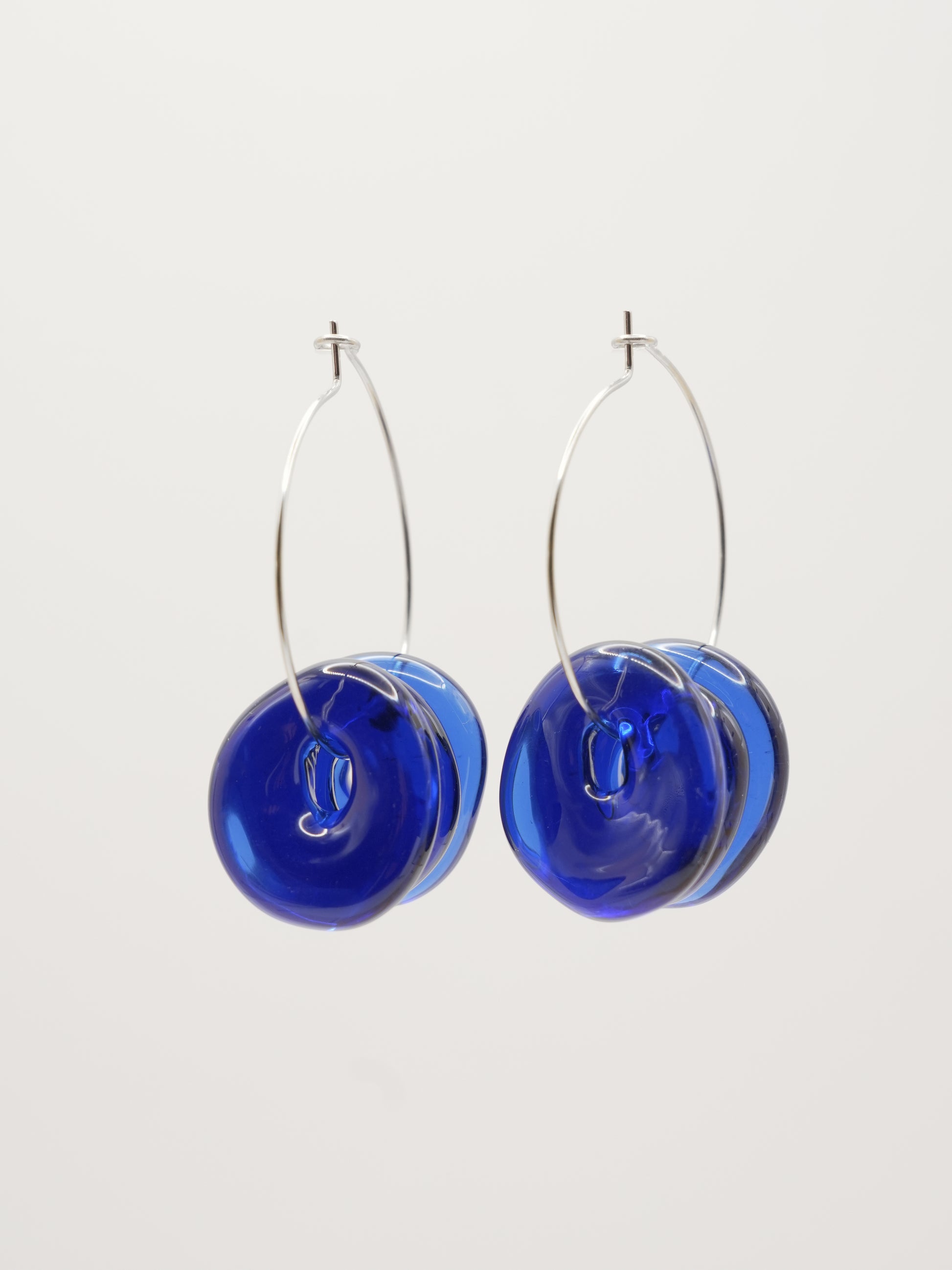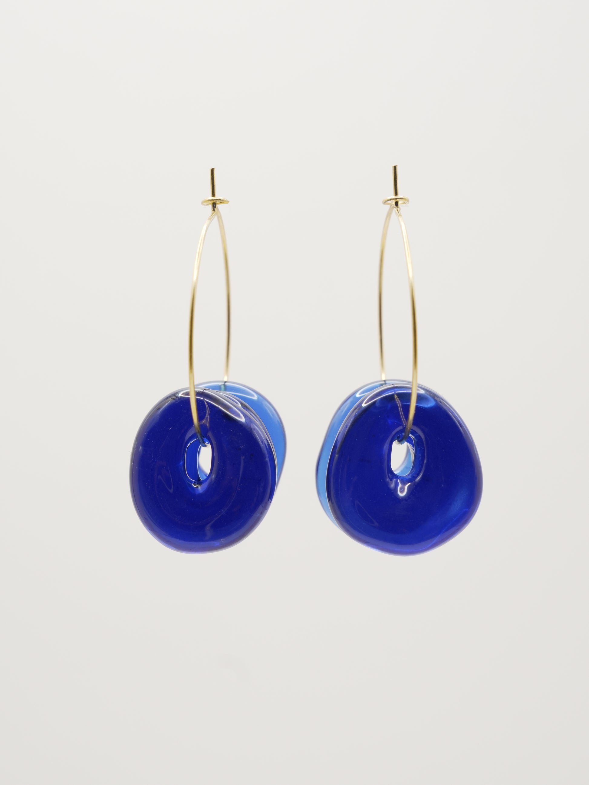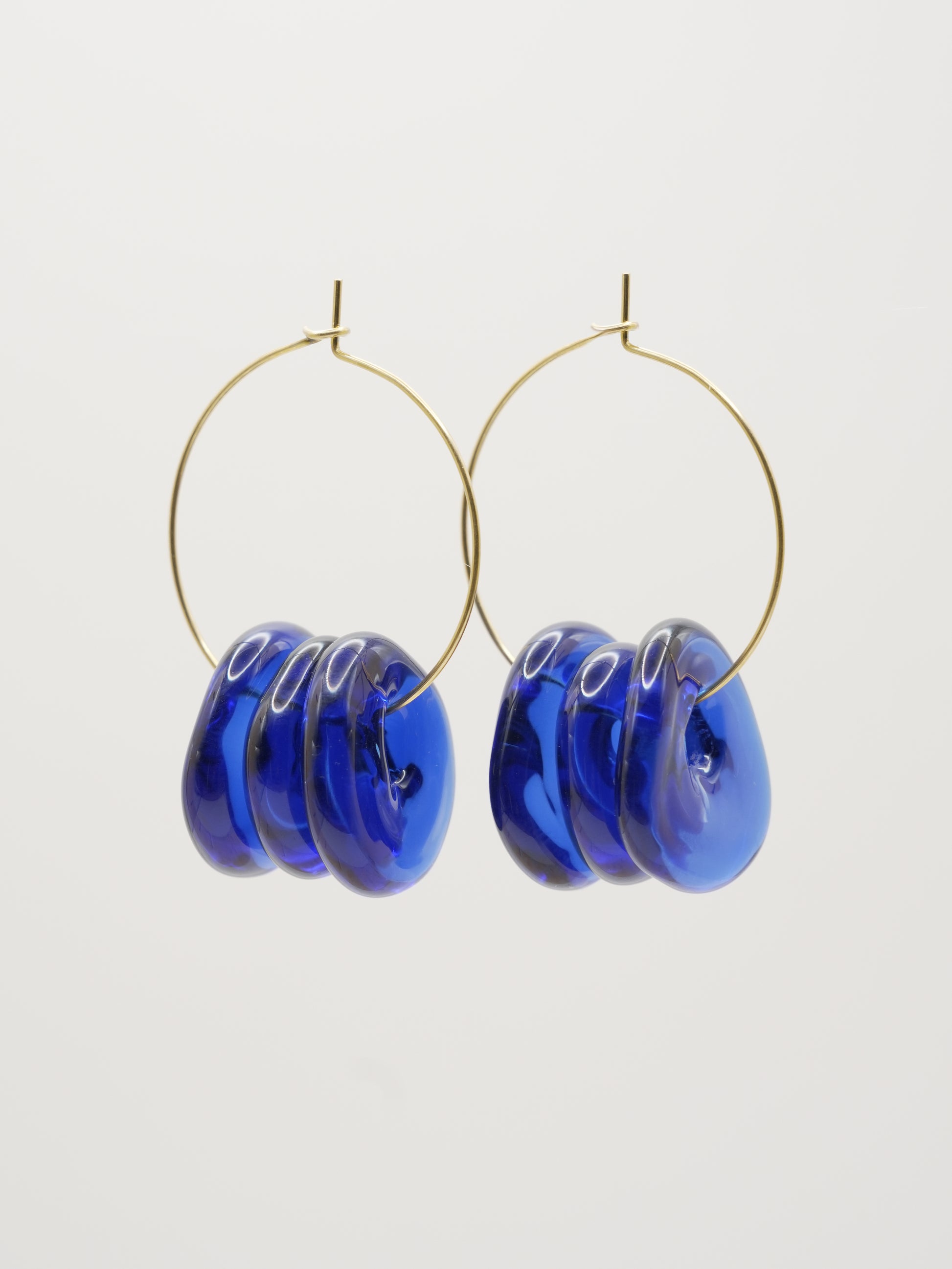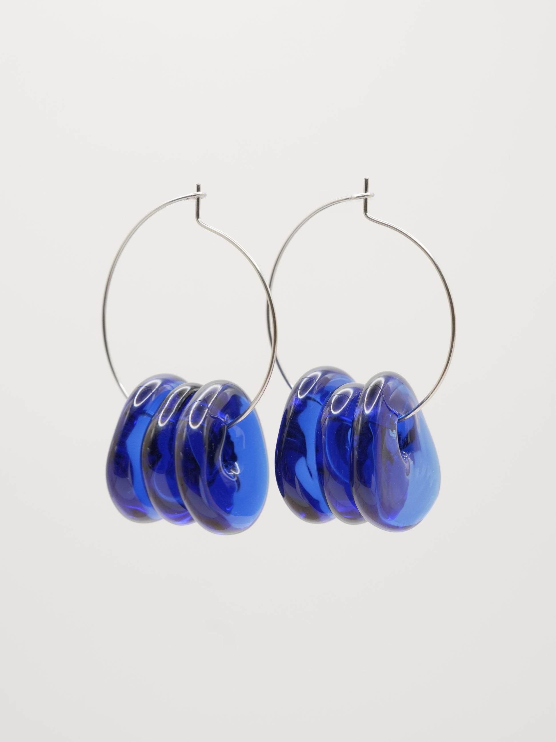 Los pendientes Bayahibe están formados por tres piezas de vidrio borosilicato azul en un aro. La artesanía manual se refleja en la precisión de los detalles y la singularidad de cada pieza, lo que les confiere un aspecto distintivo y elegante. Cada pieza tiene diferentes formas y patrones, pero juntas forman un conjunto armonioso y perfecto para cualquier look.