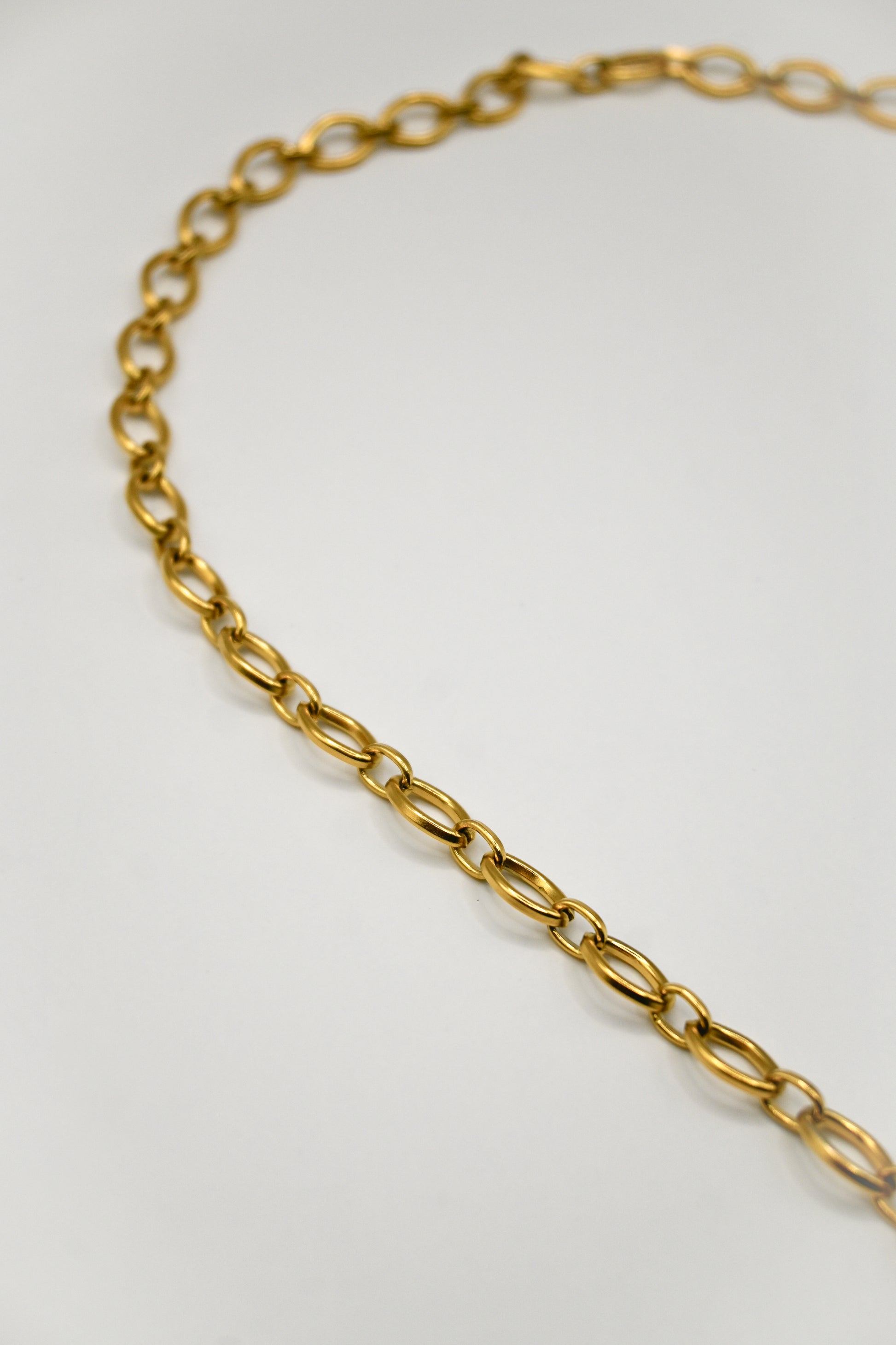 - ORO: Vidrio borosilicato azul junto con un cierre y cadena de acero inoxidable bañado en oro 18k de 45cm.