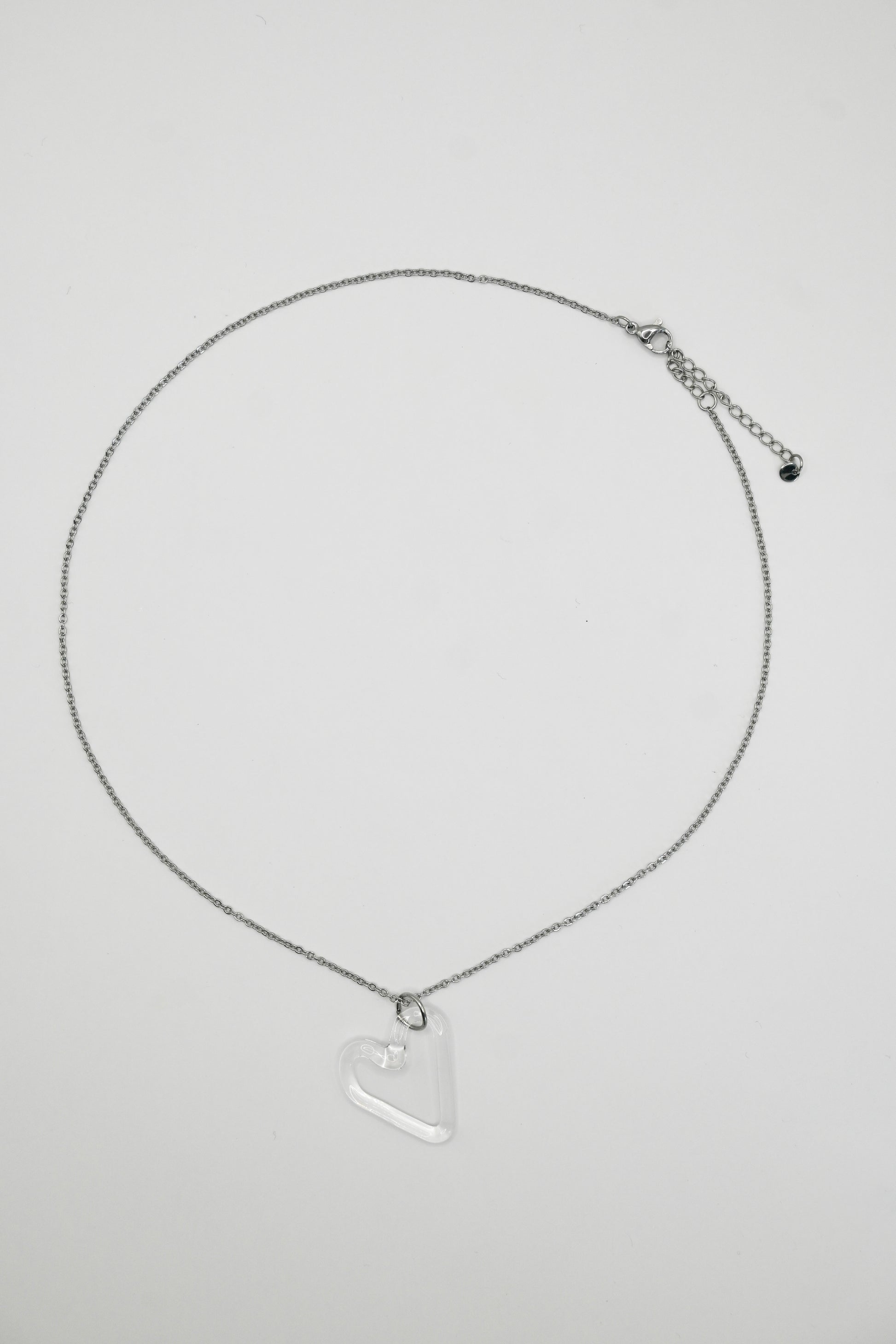 - Plata: Vidrio borosilicato transparente y cadena de acero inoxidable de 45cm.