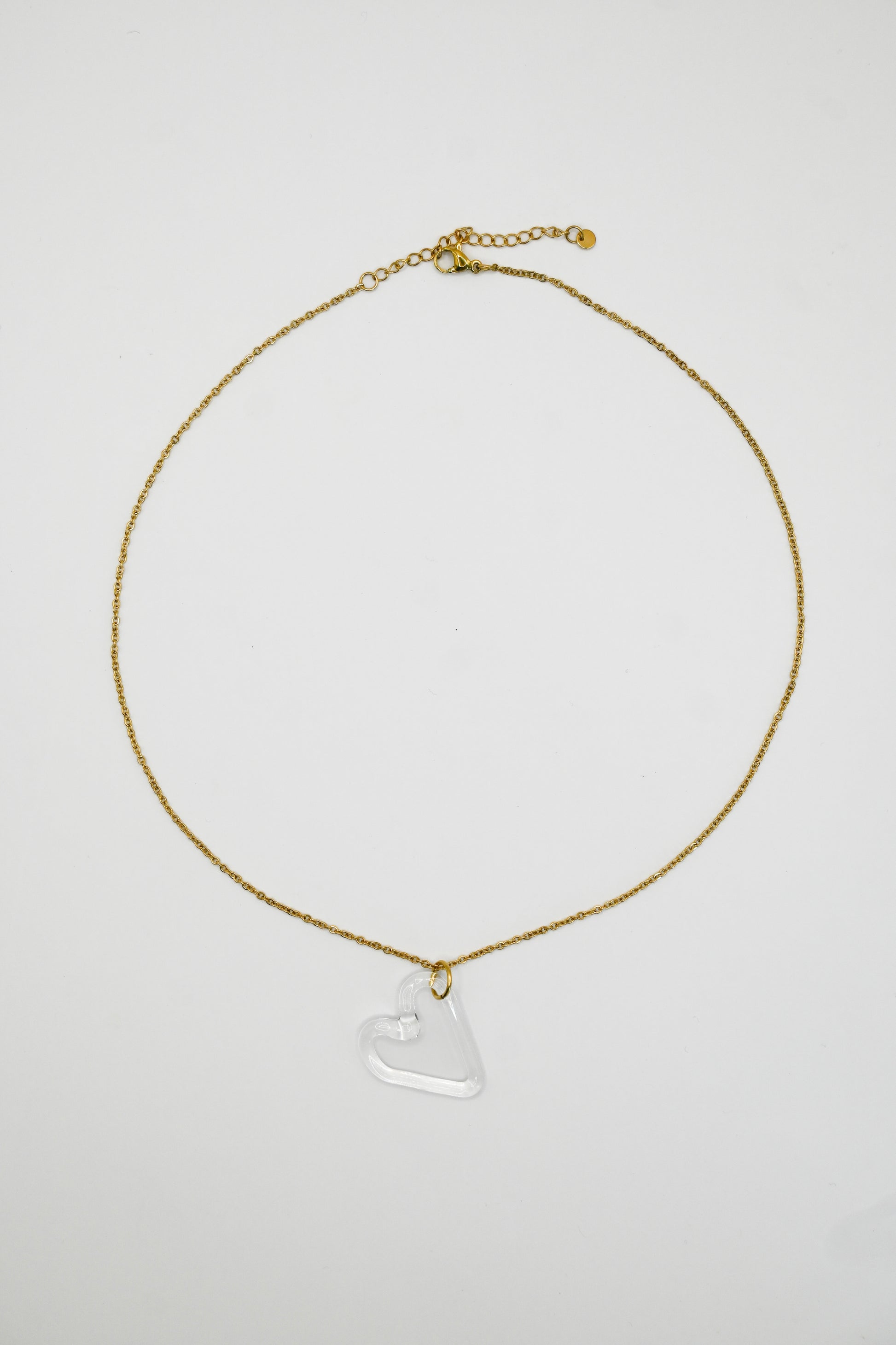 - Oro: Vidrio borosilicato transparente y cadena de acero inoxidable bañado en oro de 18k de 45cm.