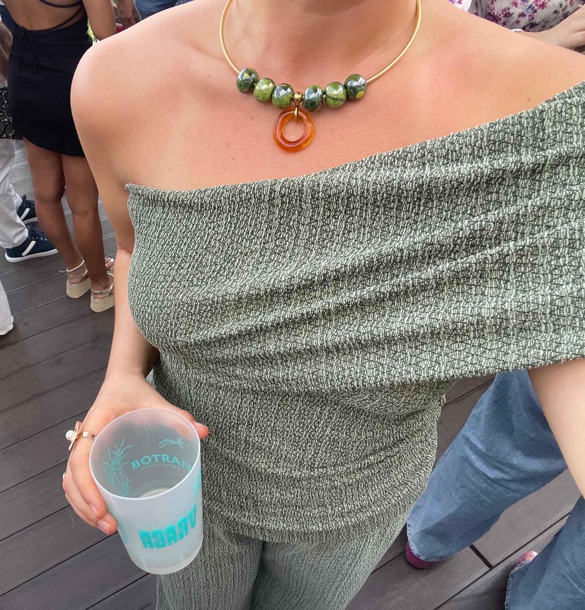 El collar Daiquiri está diseñado para capturar la luminosidad y ligereza de una tarde de verano. Los matices translúcidos del vidrio y el toque de las piezas de cerámica recuerdan al reflejo del sol sobre el agua del atardecer. Su forma orgánica y acabados pulidos aportan una sofisticación perfecta para acompañar un look relajado pero con intención. Ideal para llevar durante un tardeo veraniego: informal, elegante y con carácter.