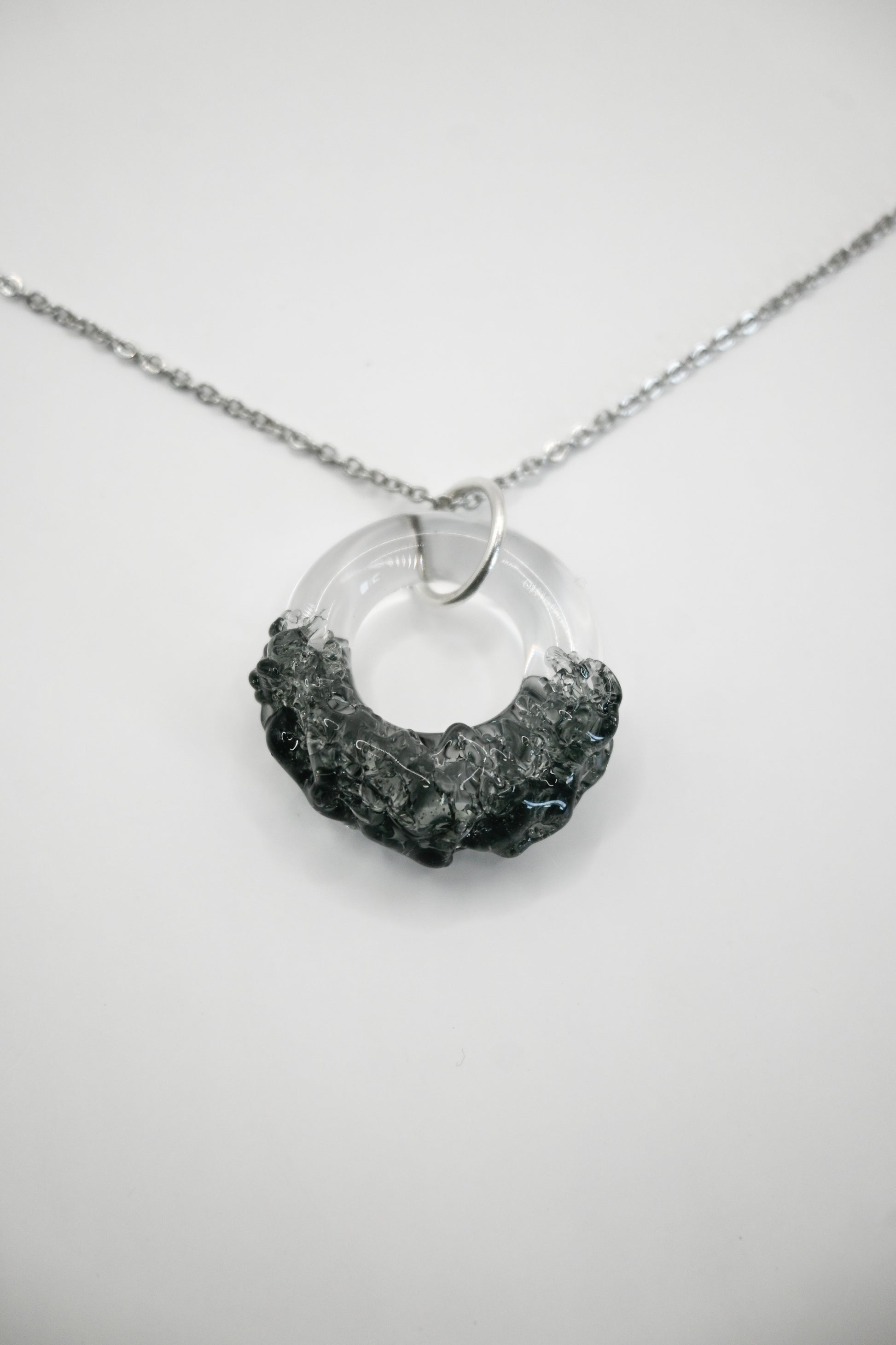 - Plata: Vidrio borosilicato transparente y negro y cadena de acero inoxidable de 45cm.
