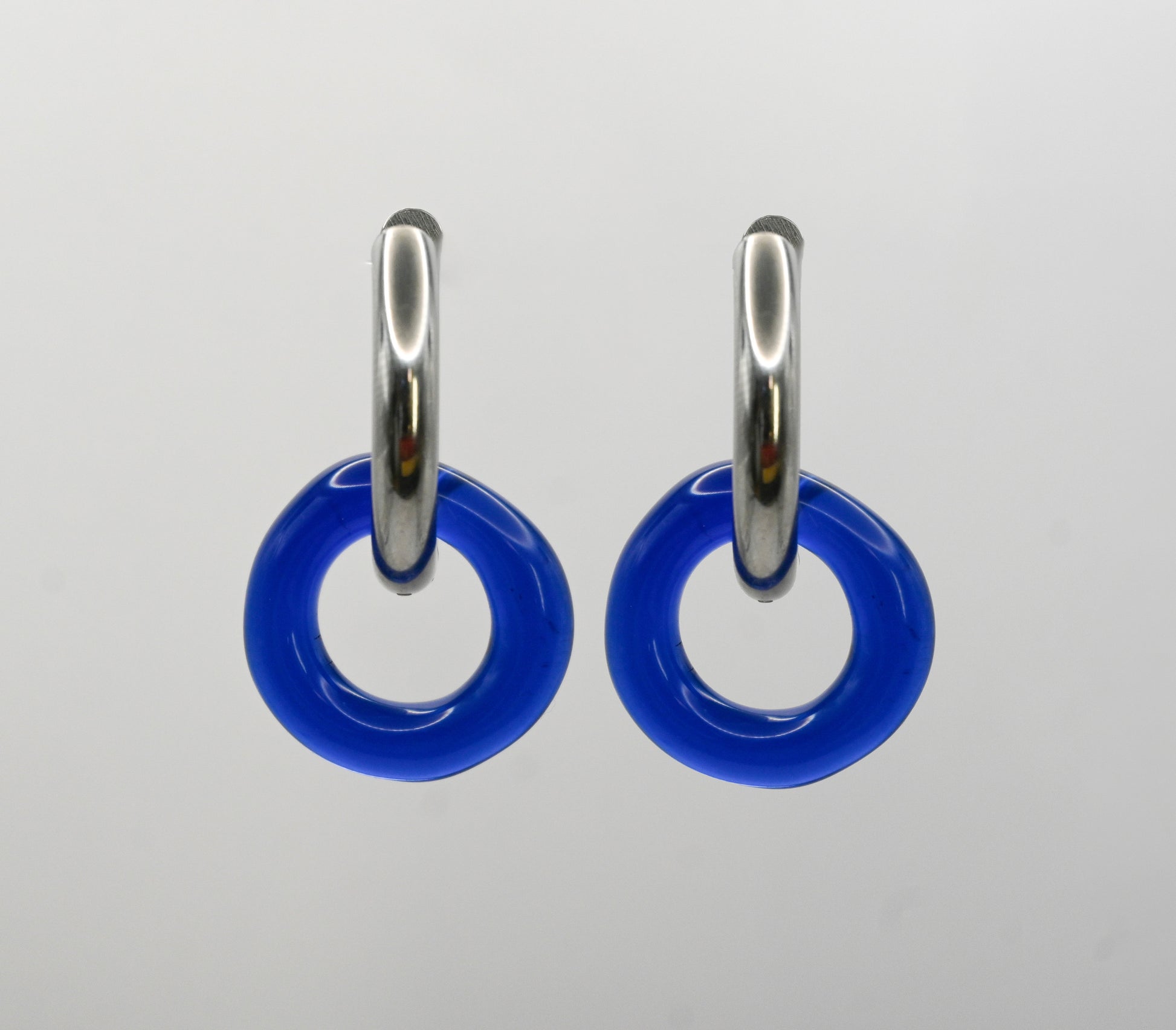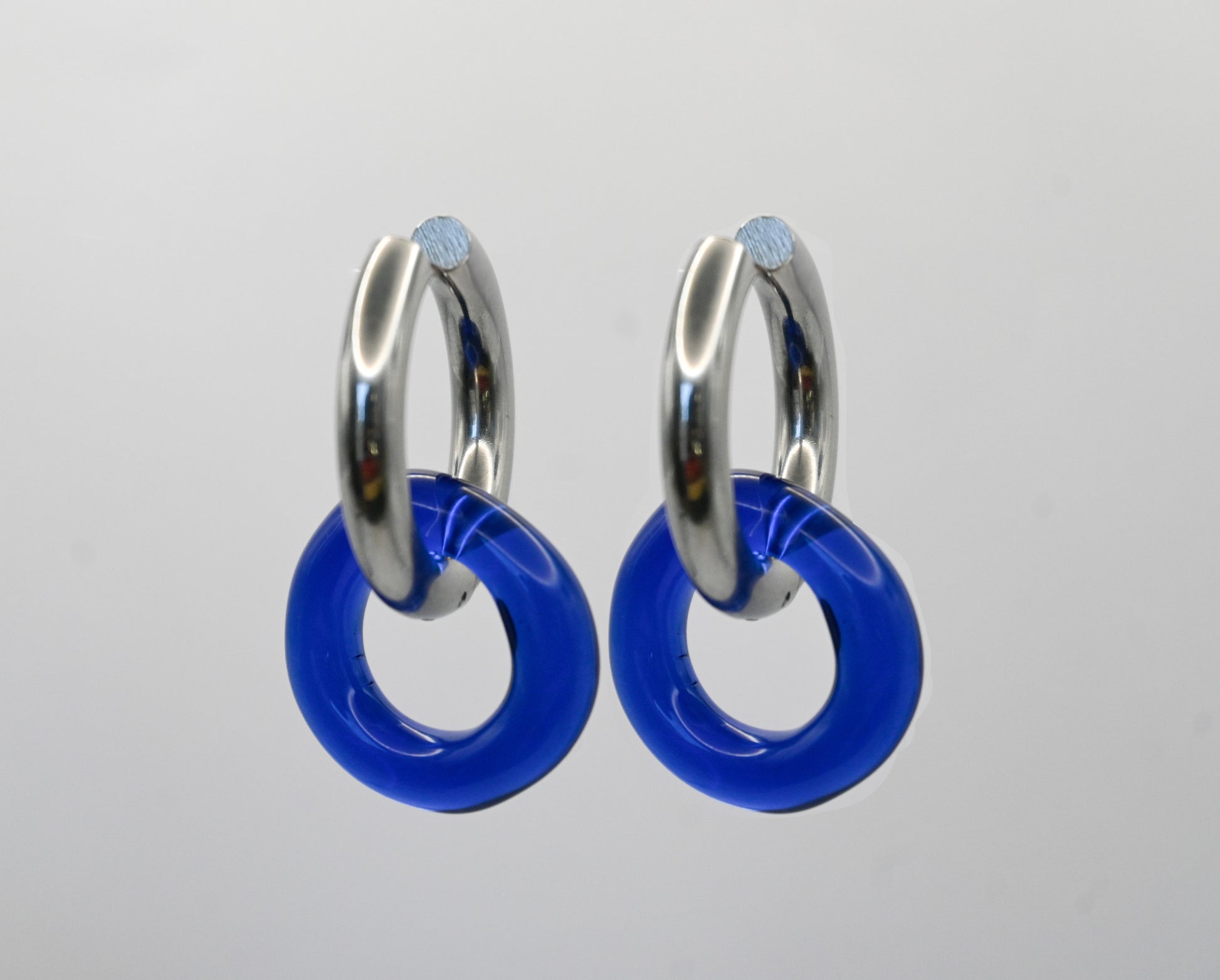 Los pendientes Luma son verdaderas obras de arte, hechas a mano en forma de redonda con vidrio borosilicato azul. Cada detalle refleja la habilidad artesanal. El aro de acero inoxidable, añade un toque de lujo y durabilidad a estos pendientes, proporcionando un contraste con la redonda de vidrio. Estos pendientes son una expresión de estilo y elegancia, perfectos para añadir un toque sofisticado a cualquier atuendo.