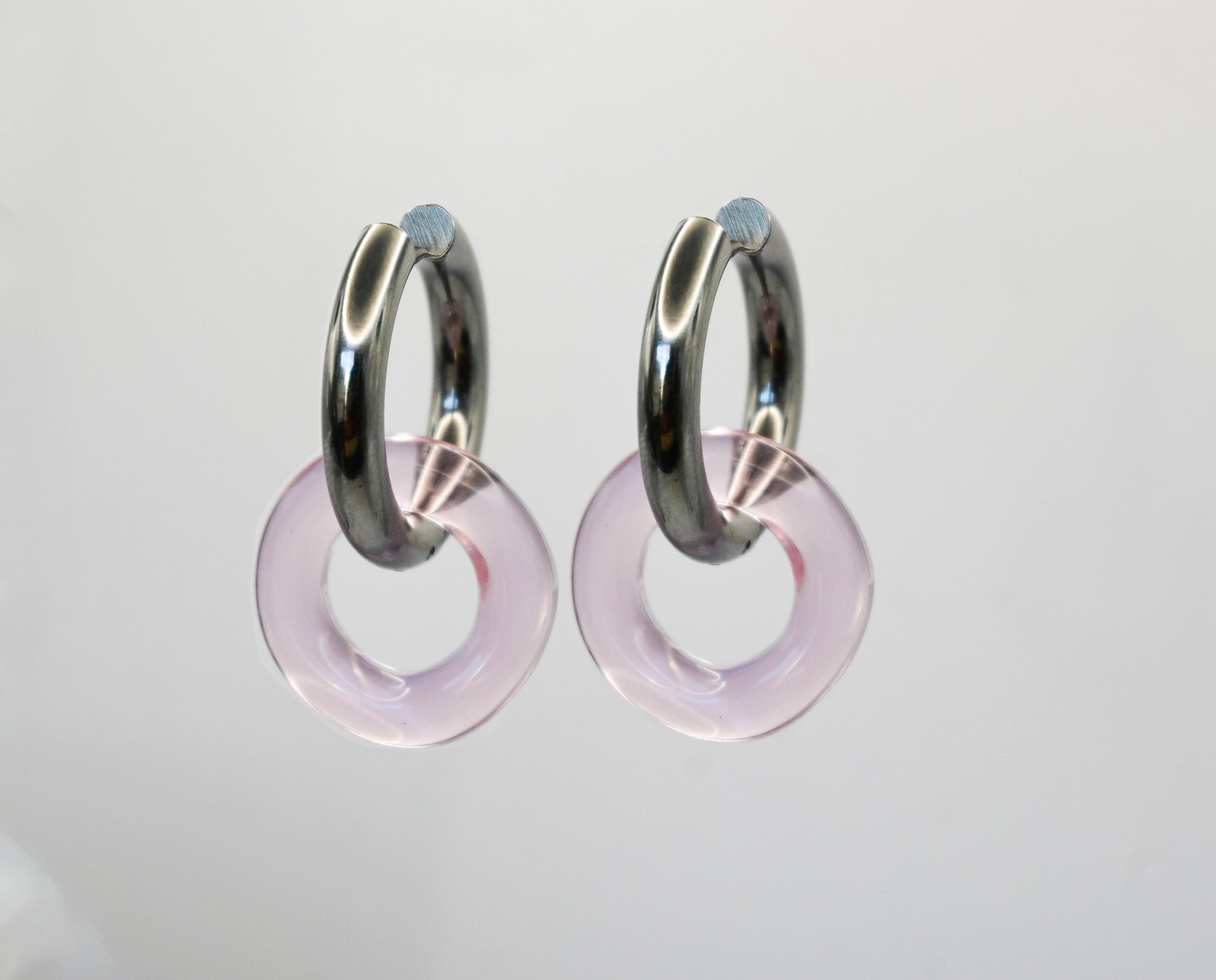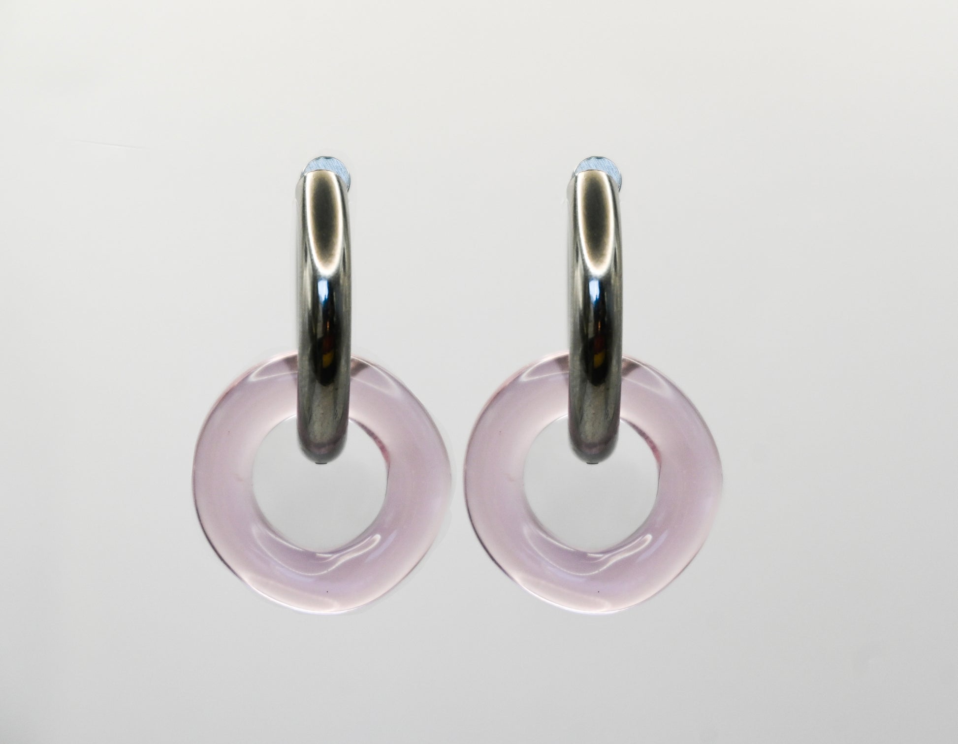 Los pendientes Luma son verdaderas obras de arte, hechas a mano en forma de redonda con vidrio borosilicato rosa. Cada detalle refleja la habilidad artesanal. El aro de acero inoxidable, añade un toque de lujo y durabilidad a estos pendientes, proporcionando un contraste con la redonda de vidrio. Estos pendientes son una expresión de estilo y elegancia, perfectos para añadir un toque sofisticado a cualquier atuendo.