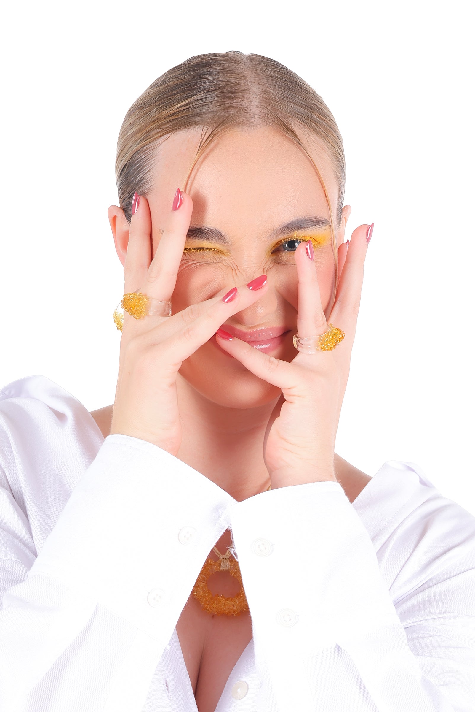 El anillo de Nashira es una pieza vibrante que irradia alegría y estilo. Su diseño presenta una base elegante adornada con puntitos de color amarillo, que evocan la calidez del sol y la frescura de los días de verano. Cada puntito está cuidadosamente colocado, creando un efecto luminoso que captura la luz de manera encantadora. Perfecto tanto para ocasiones especiales como para el uso diario, este anillo es versátil y se adapta a diferentes estilos, desde un look casual hasta uno más sofisticado. Su ligereza asegura una comodidad excepcional, permitiéndote llevarlo con facilidad durante todo el día. Con este anillo, añadirás un toque de color y originalidad a tu look, sintiéndote siempre radiante y lista para brillar en cualquier momento.