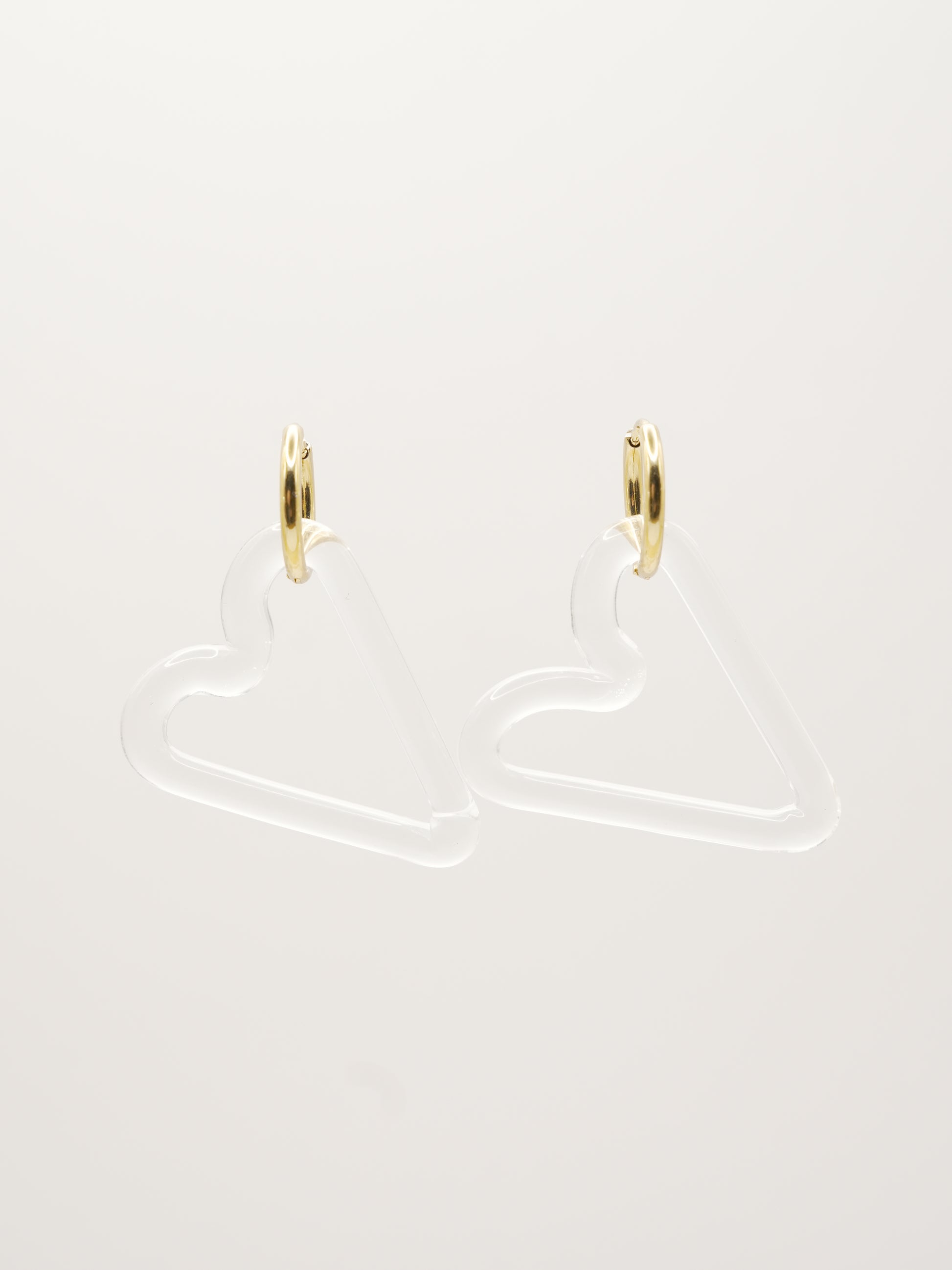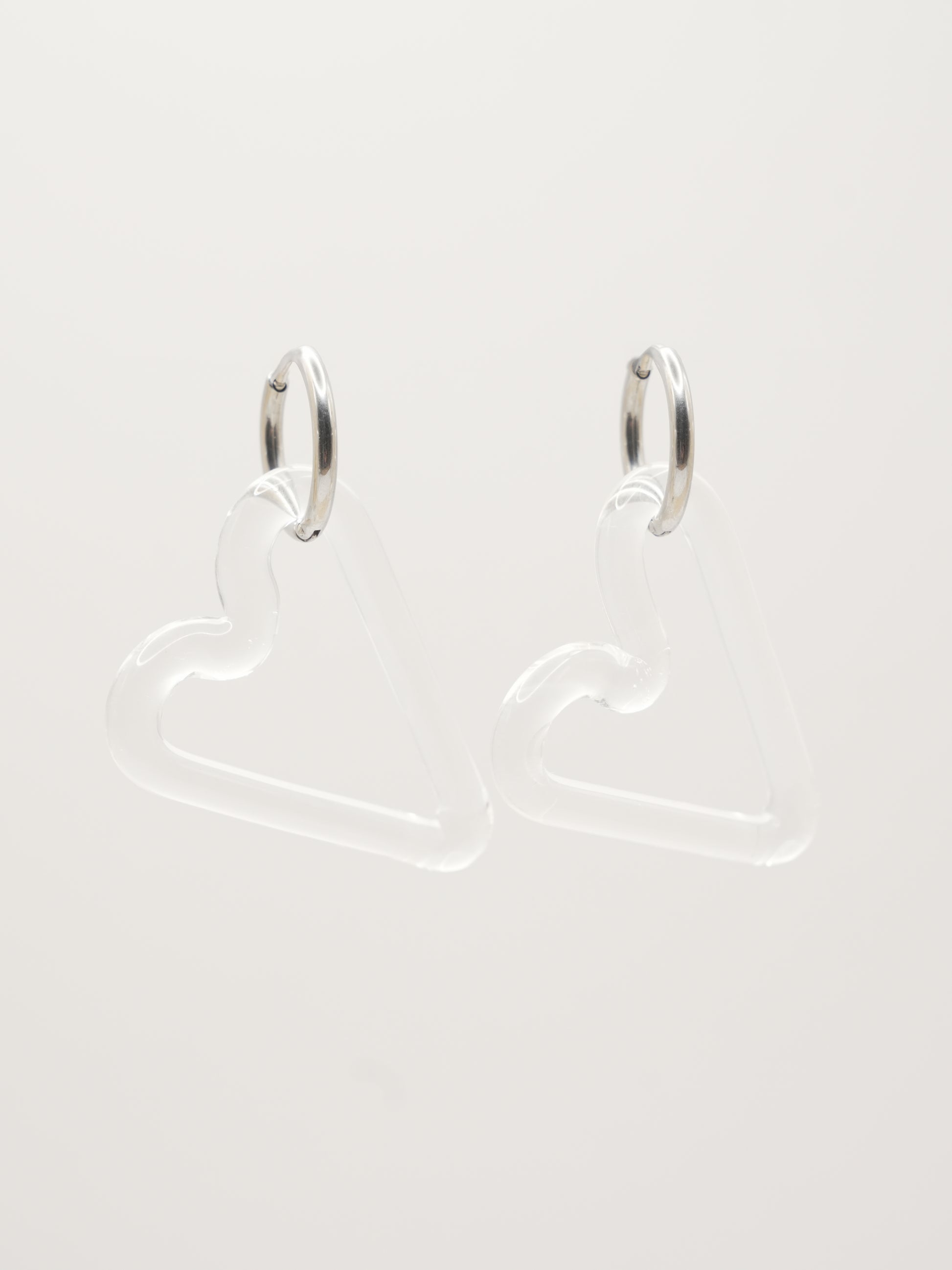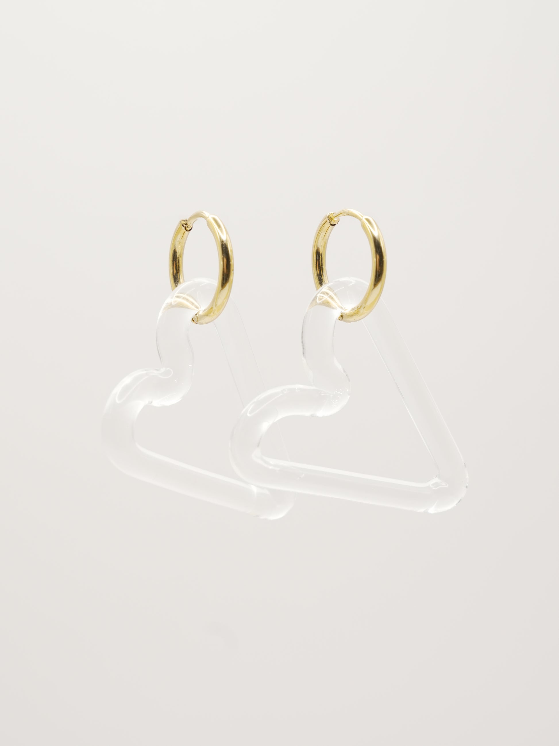 Los pendientes Cora . 1 son encantadoras piezas de vidrio borosilicato transparente hechas a mano en forma de corazón con unos aros de acero inoxidable. Los corazones únicos junto con los aros, proporcionan un contraste elegante, lo que hace que estos pendientes sean tanto llamativos como sofisticados para llevarlos en cualquier ocasión.