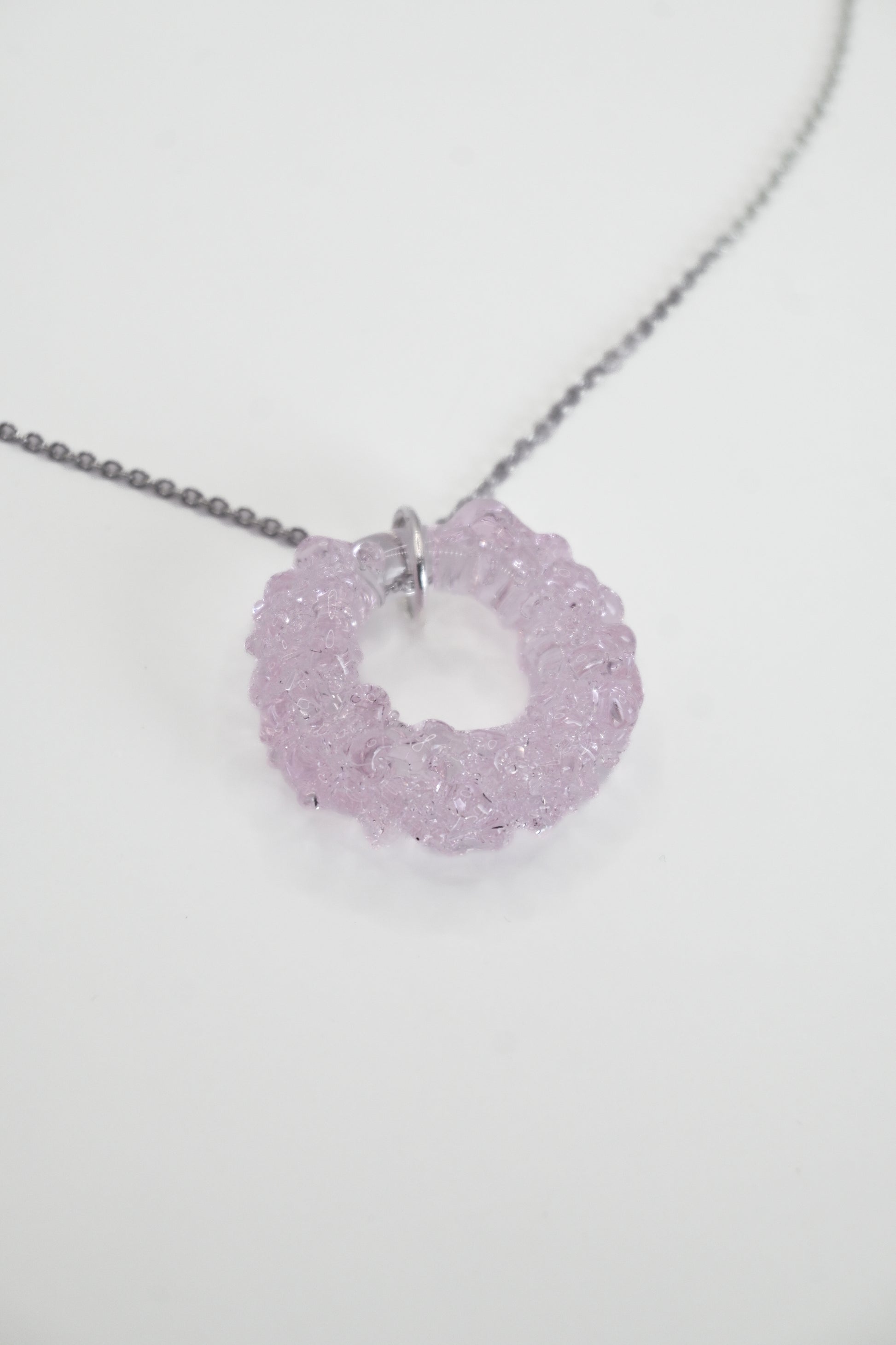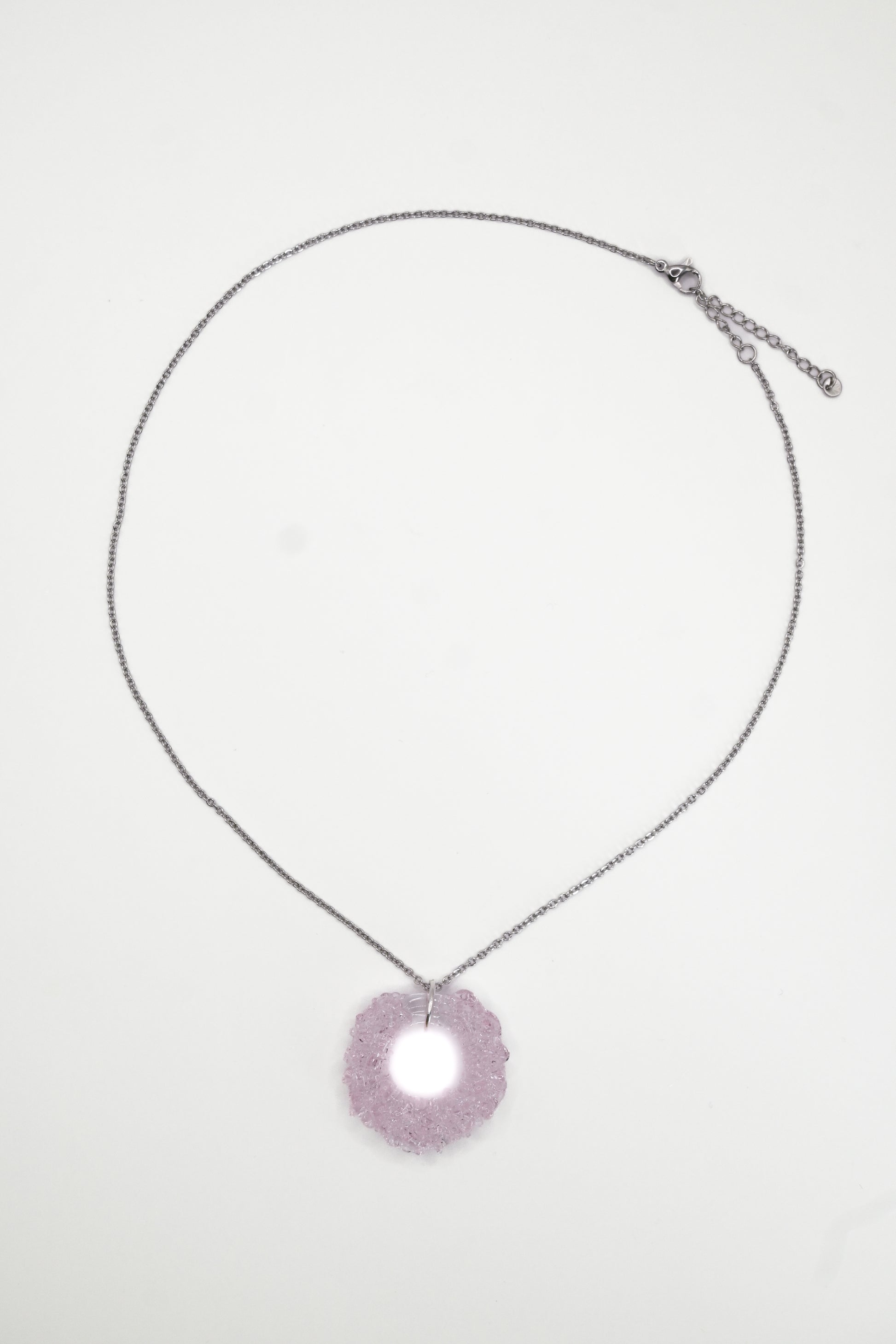 - Plata: Vidrio borosilicato transparente y rosa y cadena de acero inoxidable de 45cm.