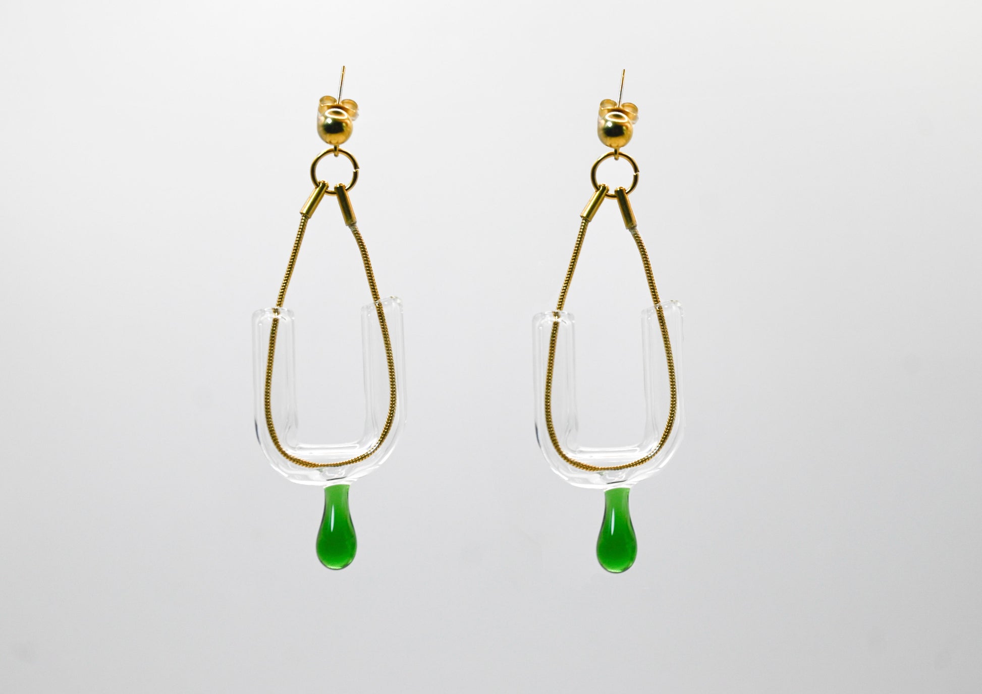 Delicadamente hecho a mano, los pendientes Vela combinan la pureza del vidrio transparente con una sutil gota de color verde. Es una pieza elegante y ligera, diseñada para acompañarte en esas noches de verano donde todo fluye con naturalidad y estilo. Su brillo tenue evoca el encanto de una cena elegante: el sonido de las copas, la conversación pausada y el aire cálido que envuelve. Esta joya artesanal busca llamar la atención, realzar la belleza de lo simple, lo auténtico, lo que permanece.